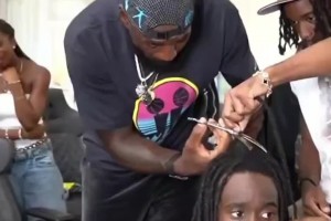 詹姆斯剪掉网红kai脏辫 接到自己头上展示新发型