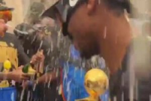 雷霆更衣室香槟派对 亚历山大开慢了被队友一阵狂喷 2025-06-23 16:50