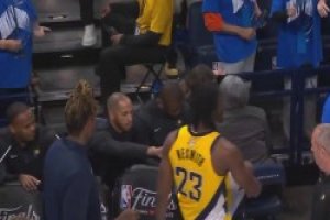 相当懊恼!内史密斯六犯离场,下场回到替补席后怒踢椅子