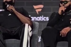 球迷在活动现场大喊赢下冠军!哈登:我会的!我正在努力!!!