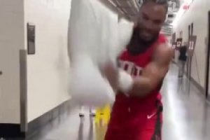 交易了!狄龙此前球员通道暴打火箭熊 这画面以后再也看不到了~