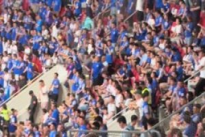 现场申花球迷高唱:足协站在你的身后,XX伴你左右!