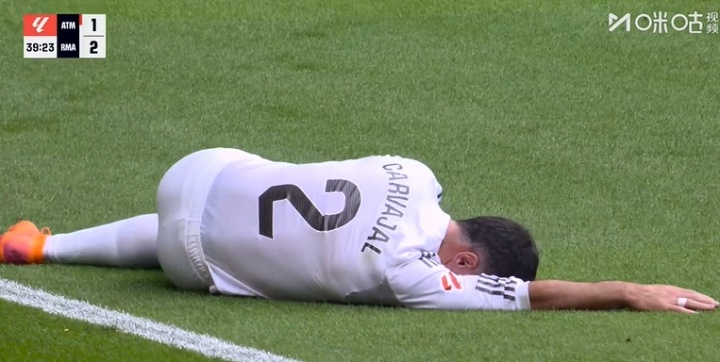 09月28日讯 皇马官方今天发布伤情公告,确认右后卫卡瓦哈尔右腿比目鱼肌受伤。《阿斯报》放大了卡瓦哈尔的受伤瞬间。