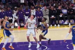 拉拉维亚上空篮两次不中,幸亏后面补进!老詹从想抱头变鼓掌