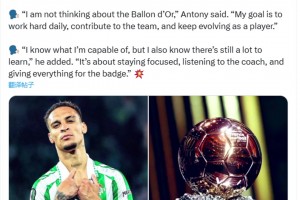安东尼:我没有考虑过金球奖,我知道自己的能力 2025-10-12 16:32