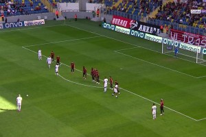 中甲赛场,陕西队外援打出贝克汉姆式吊射