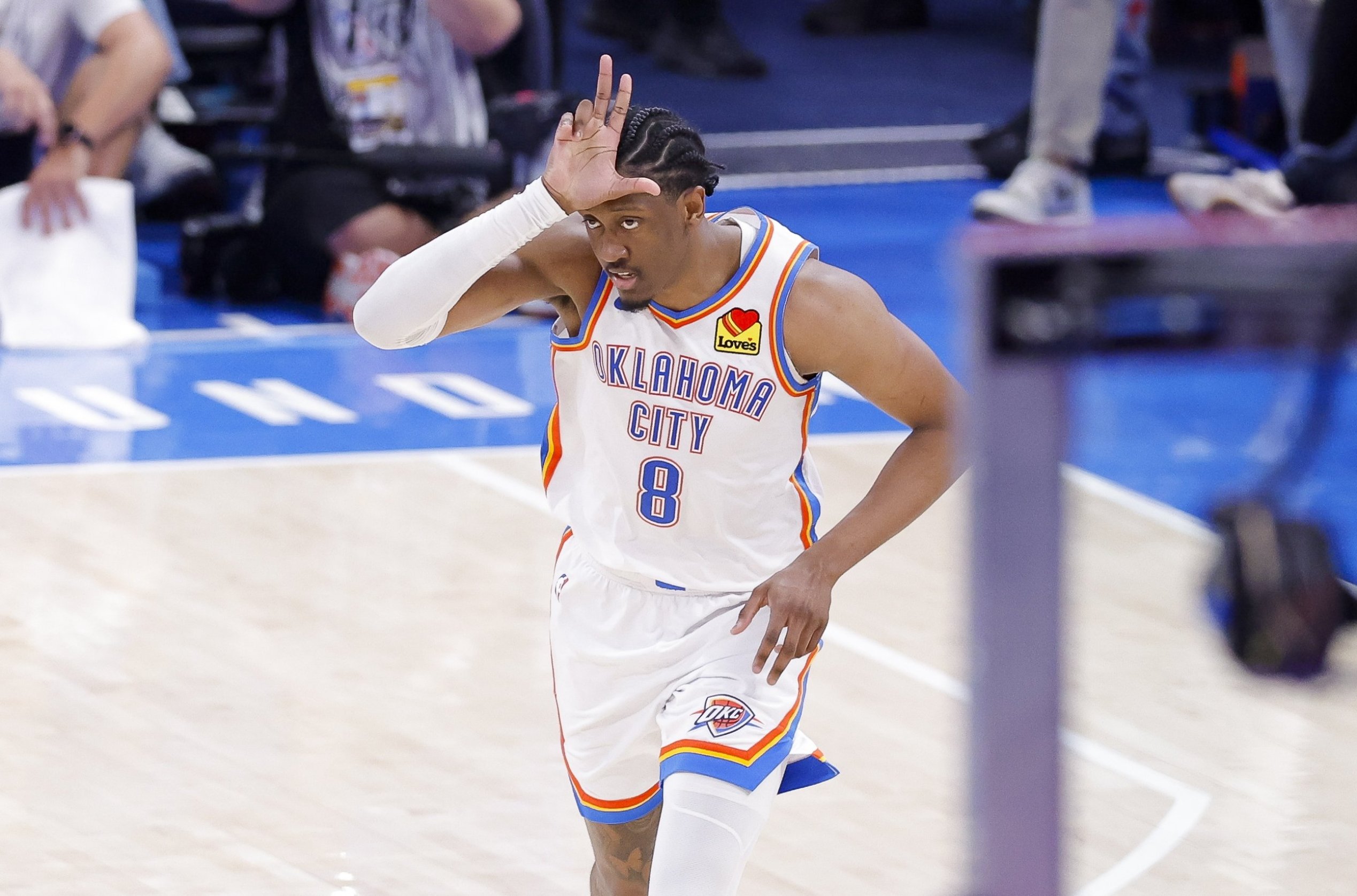 雷霆球员杰伦威的赛季表现也就此定格,常规赛阶段,杰伦威共出战69场比赛,场均32.4分钟的时间里拿到21.6分5.3篮板5.1助攻1.6抢断0.7盖帽的数据,三项命中率分别为48.4%、36.5%和78.9%。