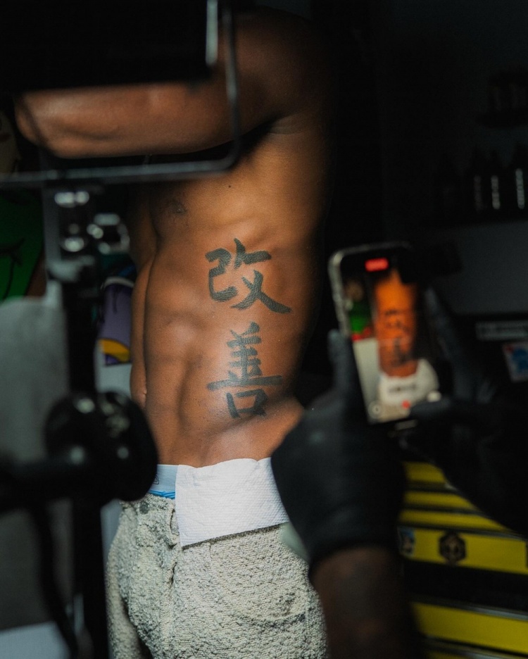 10月7日讯 纹身师Kavon Udoh晒出了他为内史密斯新增纹身的动态,内史密斯纹在腰间的是两个大大的汉字——改善。